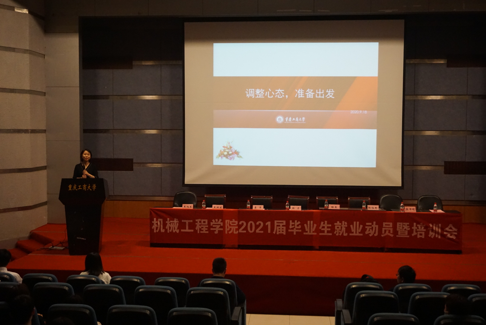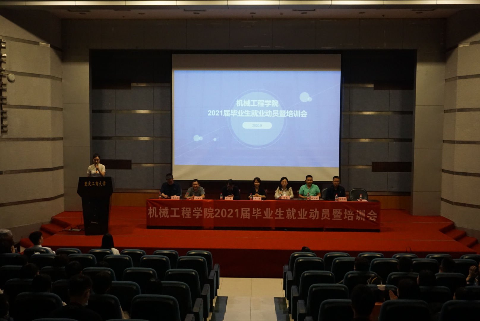 就业作为太阳集团tcy8722的亮点工作,在老师和同学们的共同努力下,学院已经连续多年获得学校“就业工作先进集体一等奖”、“优质就业先进集体”。截止今年8月31日,全院就业率83.08%,位居全校第二。在如今疫情对就业的影响下、制造业环境发展的大背景下,为帮助2021届毕业生顺利开启职业生涯、有效推进2021届毕业生就业工作,9月18日晚上6点30分,太阳集团tcy8722在7100学术报告厅召开了2021届毕业生就业动员暨培训会。学院院长、分党委书记杜力、分党委副书记程亚、副院长杨祖彬、副院长李平、机电系主任王洪建、包装系主任张书彬、汽服系主任王旭东、机制系副主任黄先德、校友代表胡晓川、付峰源、古蓉蓉、毕业班辅导员和全体毕业生参加了本次大会。会议由学院就业联络员袁娅婷主持。
