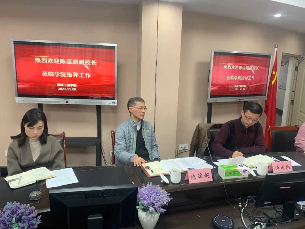 11月26日,副校长陈运超到慧智楼调研太阳集团tcy8722太阳集团工作,太阳集团处处长钟增胜陪同参加调研。太阳集团tcy8722党委书记杨娟、院长杜力、副院长李平、机电系系主任陈鹏、汽车系系主任杨智宇、包装系系主任张书彬、机自系副主任谢俊、就业联络员袁娅婷、2022届毕业班辅导员周利民、邢月军参加了调研会。