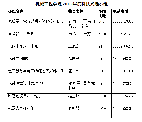 为推进学院科技创新活动发展,提高广大学生的创新、创业兴趣,增强同学的创新、创业能力,经学院教师自愿申请、院务会评审通过,以下科技兴趣小组作为本年度学院支持,年终绩效考核认可的兴趣小组。