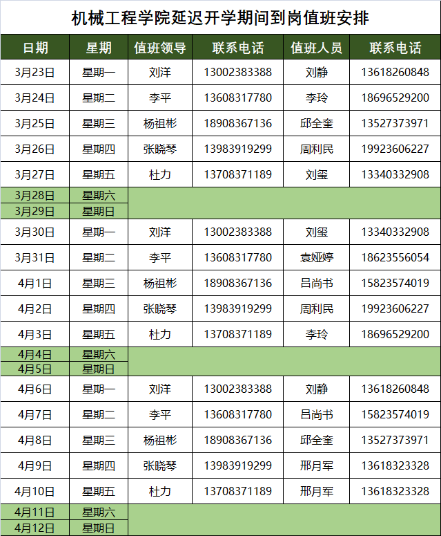 太阳集团tcy87223.23-4.10延迟开学期间到岗值班安排