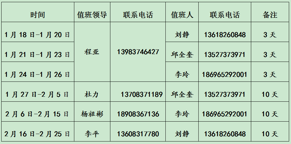太阳集团tcy87222020-2021学年第一学期寒假值班安排