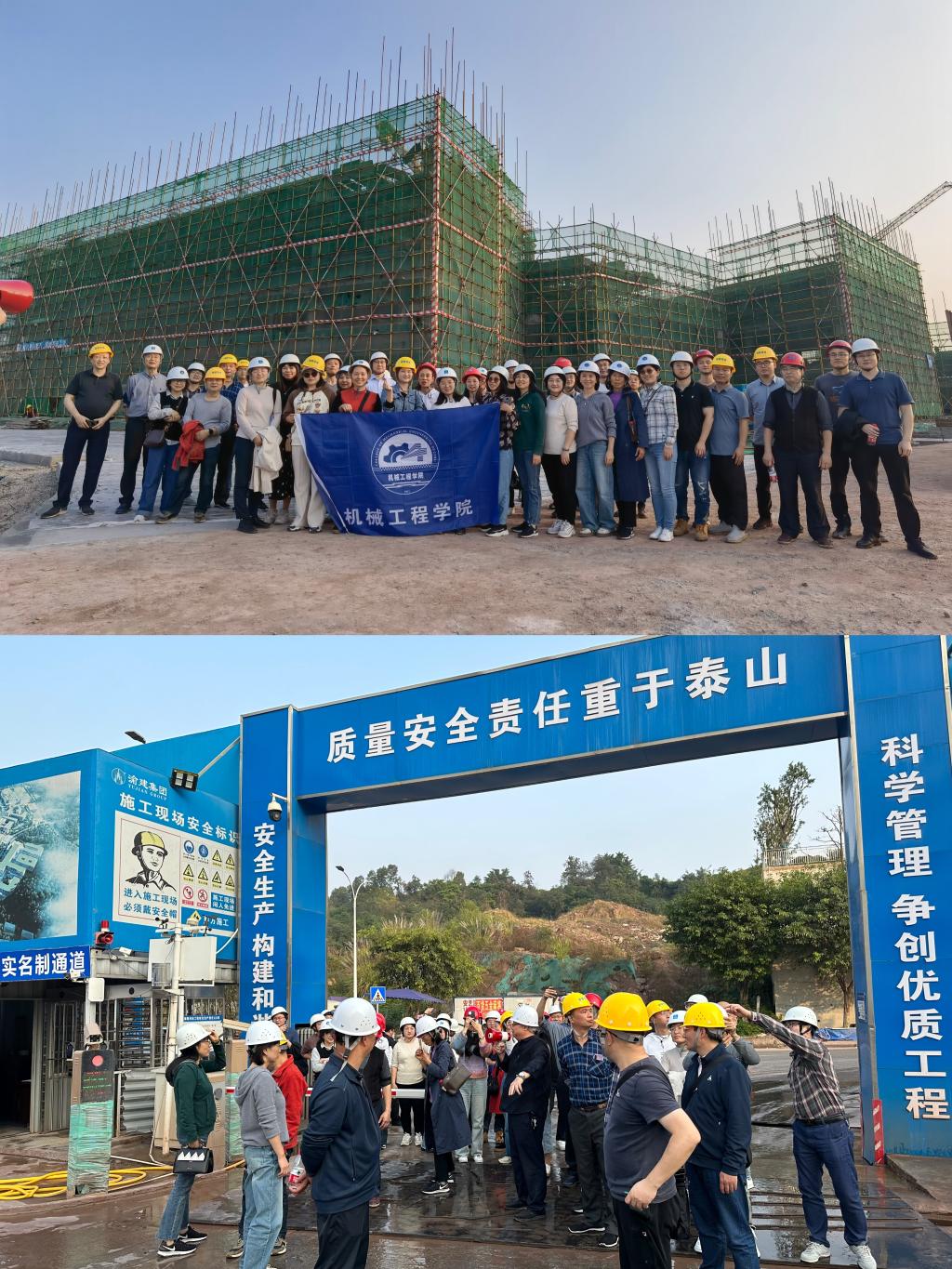 随后,为深入了解茶园新校区建设进展情况,学院全体老师们一同来到茶园校区建设现场参观考察。一片浩大的建设工地映入眼帘,挖掘机、工程车辆有序作业,一座座塔吊凌空挥舞长臂,建筑工人们在工作现场忙碌,现场参观的教职工们兴奋不已。在新校区建设负责人的带领讲解下,教职工们先后参观了教学楼、实验楼、学生宿舍等等建设现场,大家对未来在新校区的工作生活满怀憧憬。