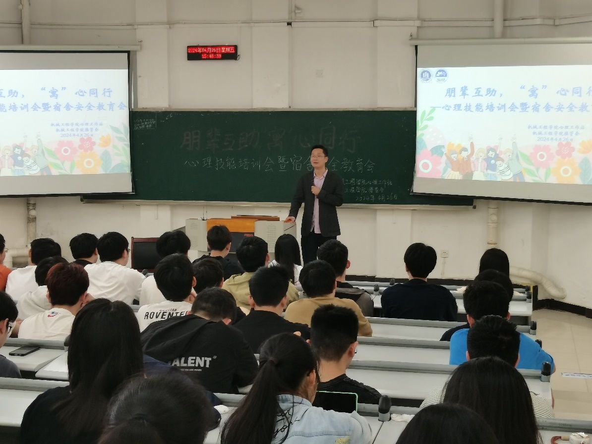 为进一步推进“一站式”学生社区建设,落实心理育人进公寓,强化学生干部对心理健康、公寓管理的正确认知,提升应对心理危机的基本技能,我院心理工作站联合楼管会于4月26日在广智楼20211召开了以“朋辈互助,‘寓’心同行”为主题的心理技能培训会暨宿舍安全教育会。此次活动由学院心理专项负责人顾咸霜主持,学院党委副书记陈春洁、兰花湖片区楼管会负责人周委、心理工作站全体成员、2023级楼栋干部及寝室长参加。