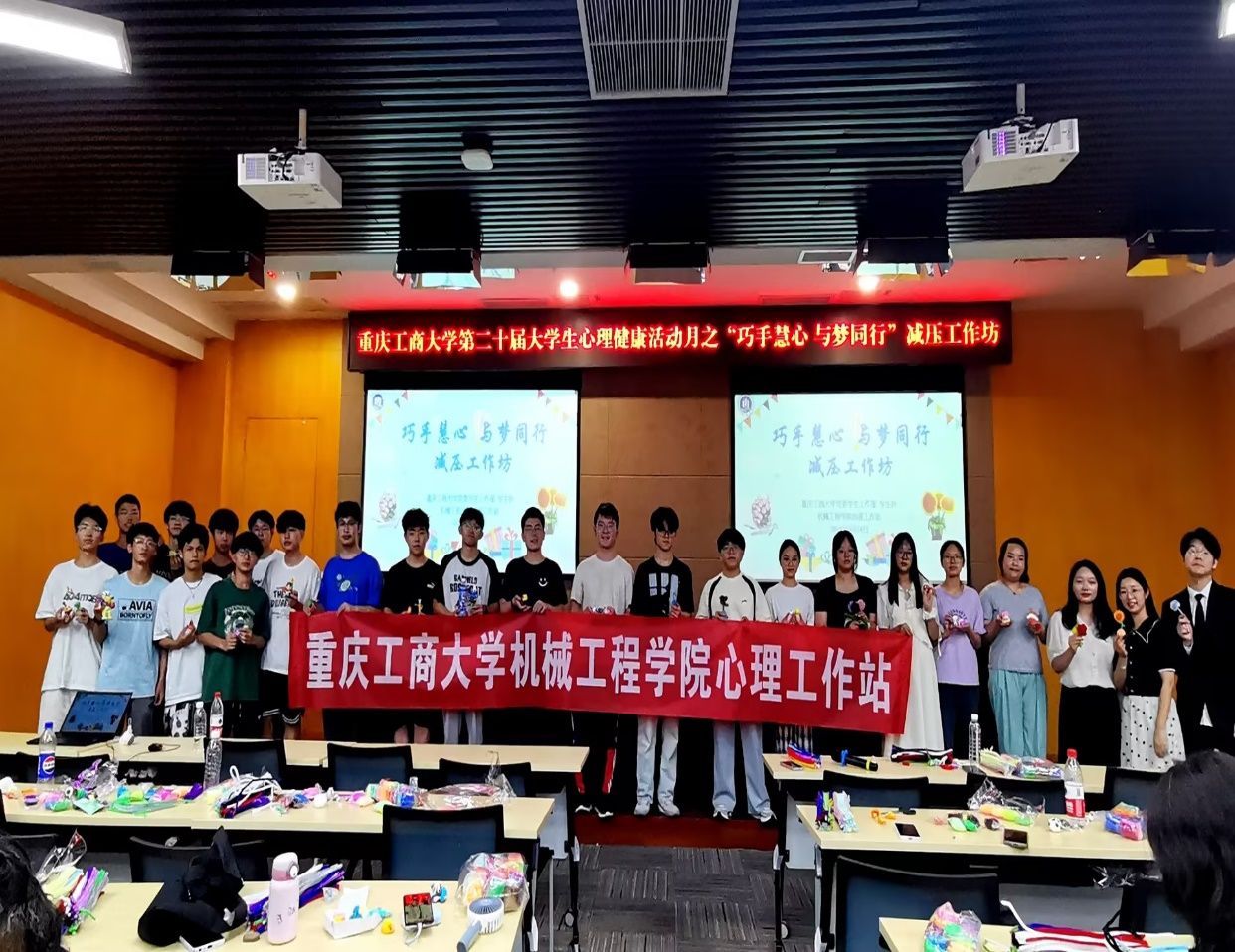 通过本次活动,学生们充分发挥了创造能力、动手能力,实现了主观情感到审美作品上的转移,体验、创造和欣赏自己的佳作,实现了以智慧心、以美润心、以劳健心,从而达到减压赋能的良好效果。