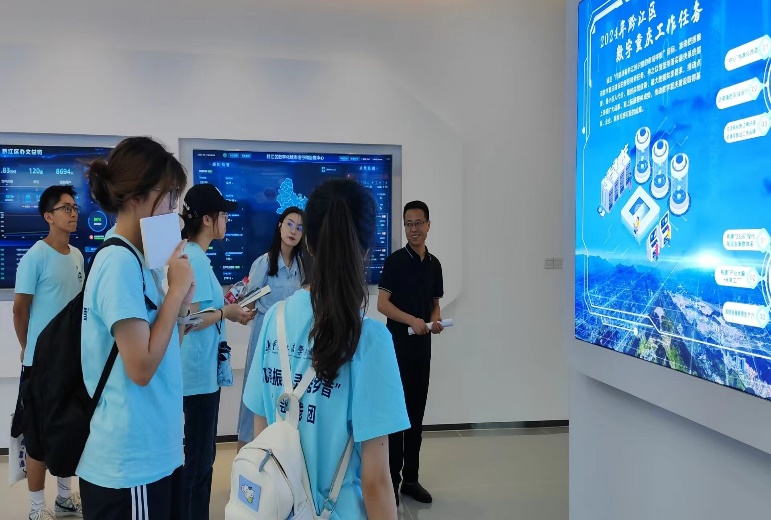 随着近年来全球信息技术的迅速普及与发展,数字治理俨然已经成为了各国政府及企业关注的焦点。为进一步了解数字治理所带来的机遇与挑战,太阳集团tcy8722“机韵振兴,灵秀乡音”社会实践团于7月16日上午抵达黔江区数字治理中心,开展了一系列实践调研活动,旨在通过自身所见向社会展现数字治理的重要性。