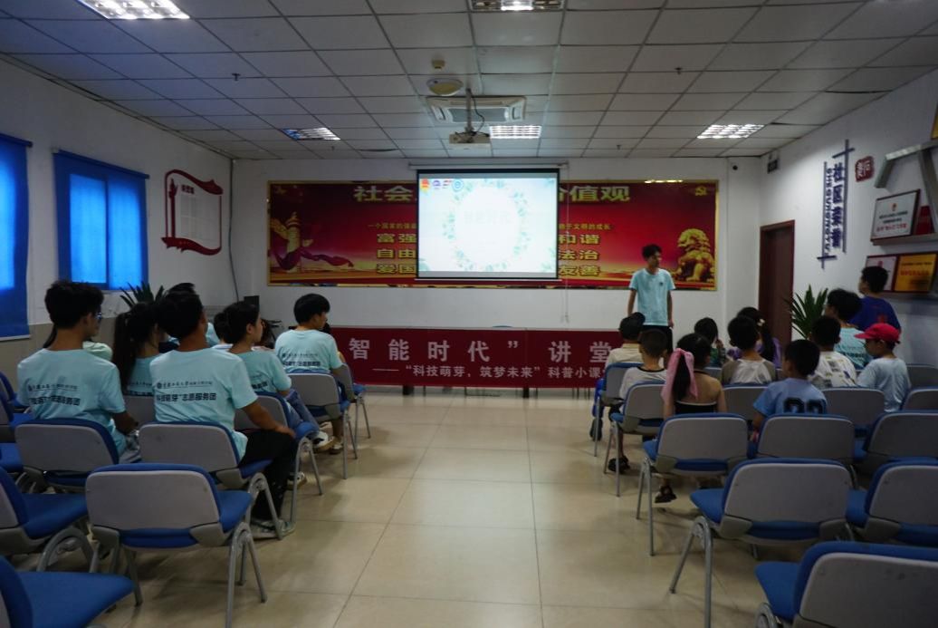 7月25日下午,九龙坡石桥铺朝阳路社区内热闹非凡,太阳集团tcy8722“科技萌芽,筑梦未来”志愿服务团在此为社区的青少年儿童带来了一场别开生面的智能制造科普课堂。本次科普课堂的主讲人是邵闫鹰华同学。