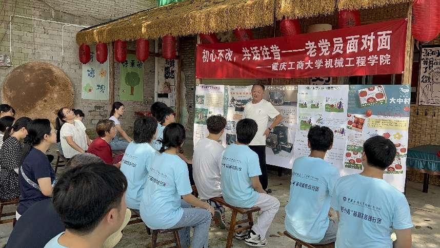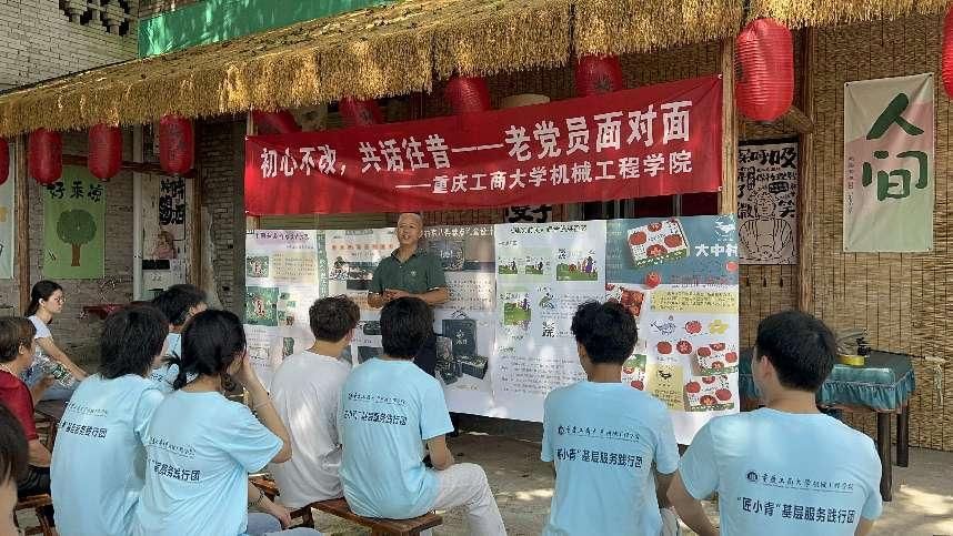 7月16日上午,太阳集团tcy8722“匠小青”基层服务践行团与万州区大周镇铺垭村老书记在村中五百年黄葛树下,共同举办了“初心不改,共话往昔”老党员面对面交流会。此次活动不仅是一次跨时代对话,更是青年学子从老一辈革命者身上学习初心与使命,传承红色精神的机会。