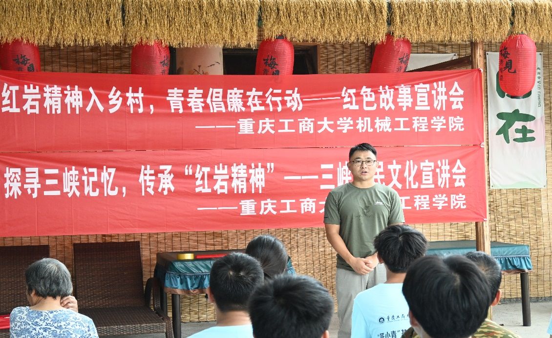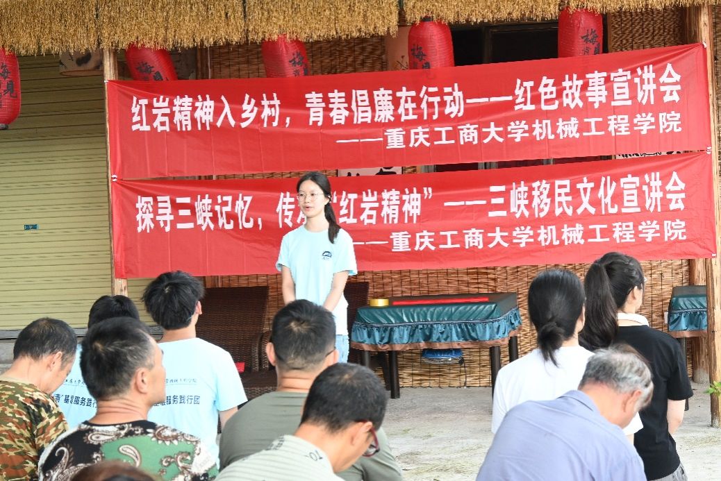 7月18日上午太阳集团tcy8722“匠小青”基层服务践行团一行走进了万州区大周镇铺垭村,成功开展了以“探寻三峡记忆,传承‘红岩精神’”为主题的三峡移民宣讲会实践活动。深入挖掘三峡地区丰富的历史文化资源,将红岩精神与三峡移民精神相融合,共同传承与弘扬这份宝贵的精神财富。