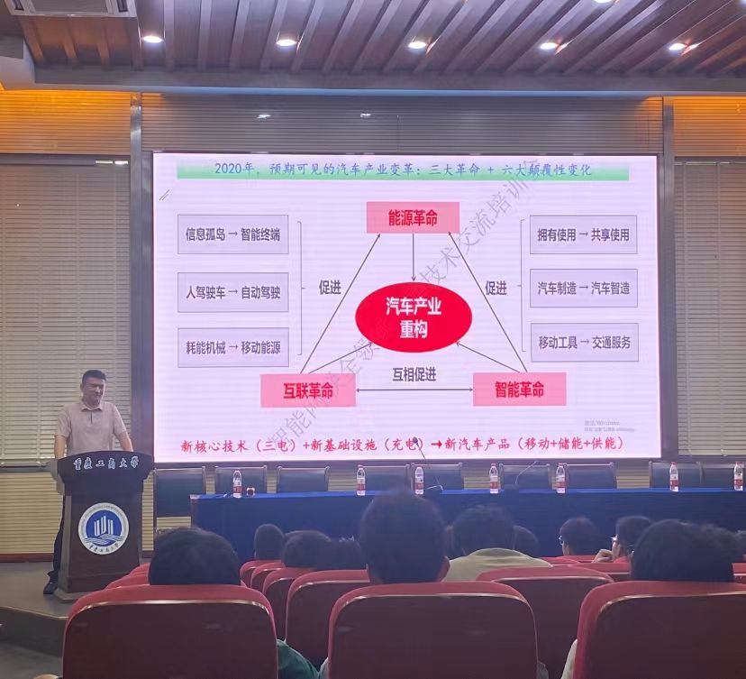 首先杨智宇主任为同学们播放了一段视频,让同学们对自己未来所学专业有了大致的认识。杨主任在会议中指出随着智能车辆技术的不断发展和应用范围的不断扩大,对智能车辆专业人才的需求也将不断增加。通过学习智能车辆专业课程,新生将具备较强的竞争力和适应能力,能够在未来的就业市场中脱颖而出。杨主任基于各自方向在学科建设、教学科研、专业培养目标、人才培养体系、学生实习实训及竞赛等各方面对智能车辆行业的发展趋势和职业前景开展具体的介绍,阐述了大家将来考研、就业时所具备的核心竞争优势。帮助新生建立职业规划意识,明确学习目标和未来发展方向。