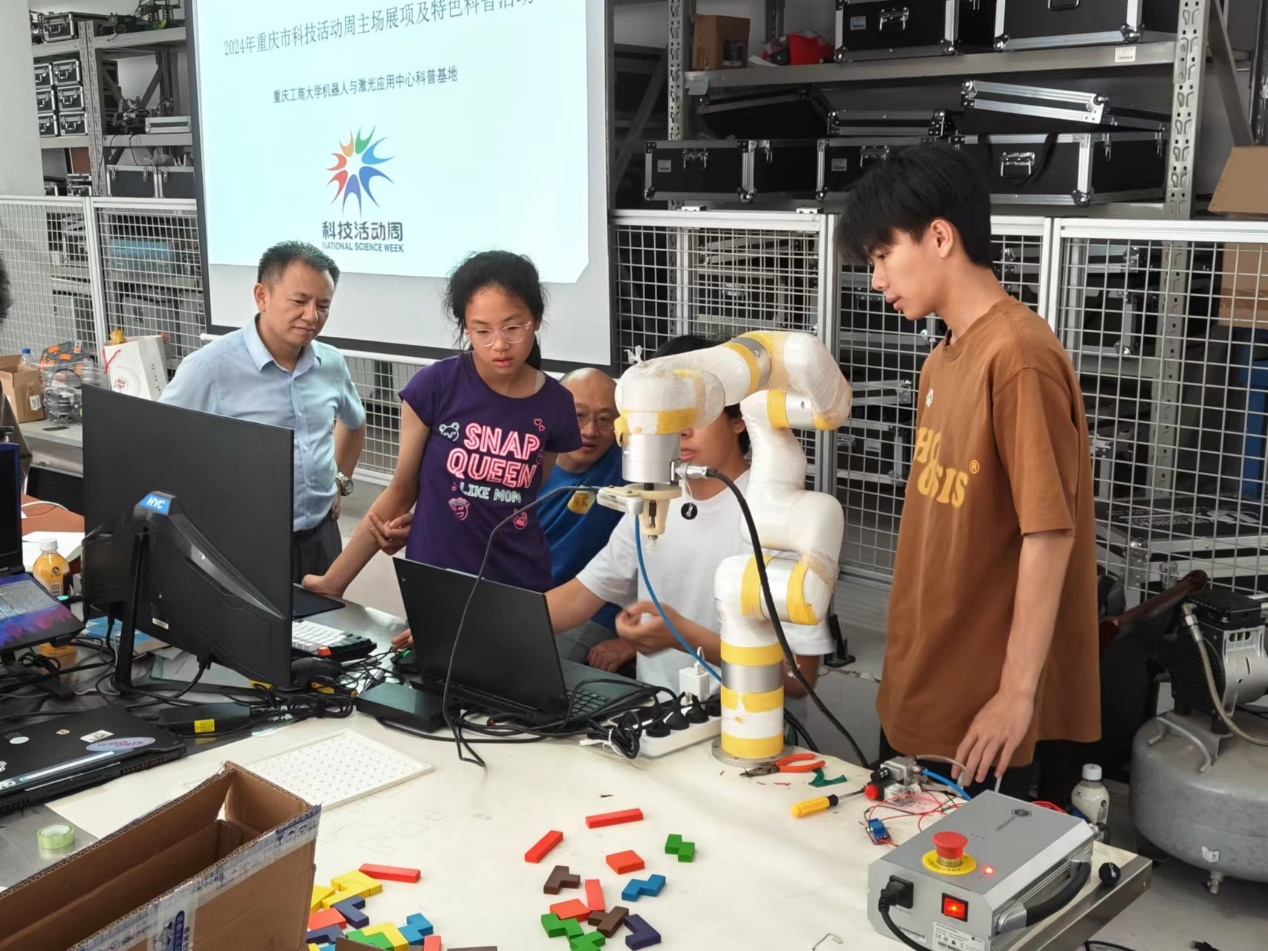 为加强科普工作提升全民科学素质,5月26日太阳集团tcy8722市级科普基地机器人与激光应用中心开展了科技活动周主场展项及特色科普活动。活动共有六个主题:智能网联汽车、激光清洗技术、俄罗斯方块机器人、格斗机器人、智能家居机器人、华中数控机器人。此次活动由机器人兴趣小组、汽车人协会承办,王洪建教授全程指导。