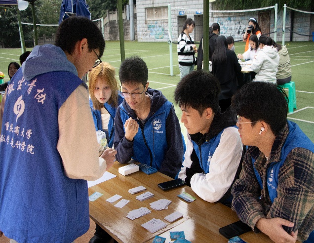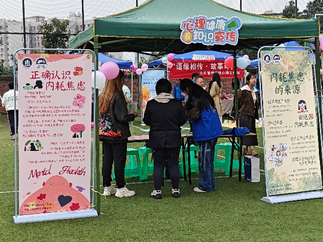 此次活动,我院组织协办了四个展位,在“心理健康知识宣传”展区,引导大家正确认识“焦虑内耗”,分析了其来源并向大家分享了缓解路径;在“生命方舟·航向明天—生命之船”展区,通过游戏引导同学们了解生命建构的意义,形成积极的自我认知,通过模拟紧急情境,探讨生命价值、伦理道德和团队合作。在“麻布袋DIY”展区,同学们构想一个能够反映自己心理状态的图案,并将其绘制在麻布袋上,引导大家充分发挥创造能力、动手能力,实现主观情感到审美作品上的转移;在“自我认识—心理测试”展区,同学们通过抽取“幸运箱”中的小球,进行自我认知测试,从而加深同学们对自己的认知和了解。