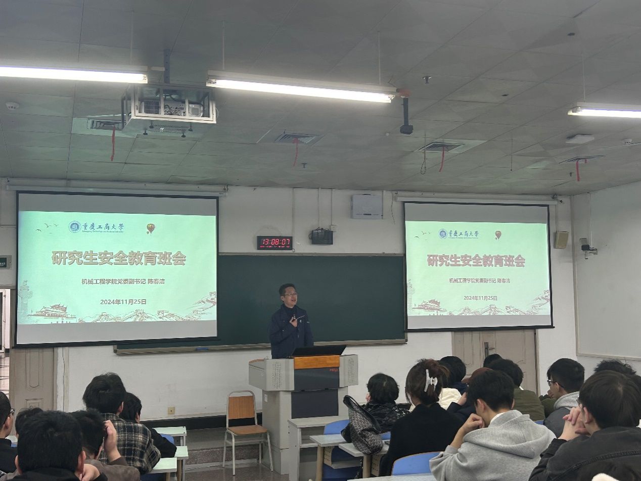 主题班会的第一阶段以“铸就科研之魂,坚守诚信之道”为主题,学院科研副院长杨帅教授为同学们做了诚信科研教育专题讲座,在这个创新驱动发展、科技日新月异的时代,每一份科研成果都承载着推动社会进步与产业升级的重任。 杨帅围绕学校关于学术诚信相关文件在宣讲时指出,在追求科研高峰的道路上,诚信如同一盏明灯,照亮着研究者前行的方向,确保科学探索的每一步都坚实可靠,同时,杨帅通过深度对话和今年在学院评选奖学金中出现的关于论文署名的具体事例等生动案例,为机械专业的研究生们树立正确科研观念,强化诚信科研意识,为未来的科技征途奠定坚实的基础。杨院长详细阐述了诚信科研的重要性,从学术不端的严重后果到诚信科研对个人职业生涯的正面影响,通过一系列真实的科研诚信案例,深入浅出地分析了诚信缺失对科研生态造成的破坏,以及如何在日常研究中坚守诚信原则,避免踏入误区。他强调,作为新时代的机械研究生,不仅要掌握扎实的专业技能,更要培养高尚的科研道德,做到“言必信,行必果”,让每一项研究成果都能经得起时间与实践的检验。