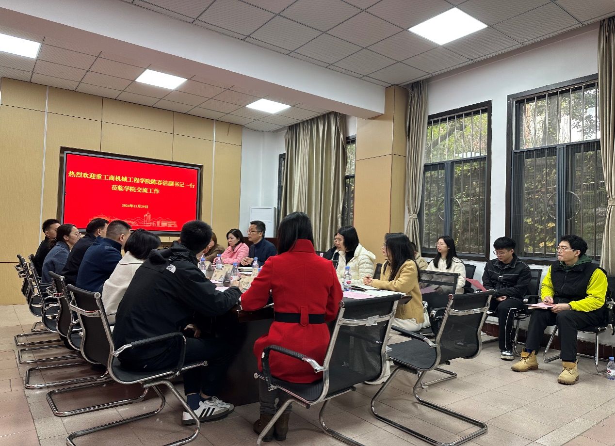 为进一步推动学生工作高质量发展,提升育人实效,11月29日下午,我院党委副书记陈春洁带队,团委书记刘静及全体辅导员教师一行12人赴重庆邮电大学先进制造工程学院开展校级交流活动,共话教育,共谋发展。重庆邮电大学先进制造工程学院党委书记朱方彬、党委副书记杨奇凡带领学工队伍热情接待了我院学工队伍一行。