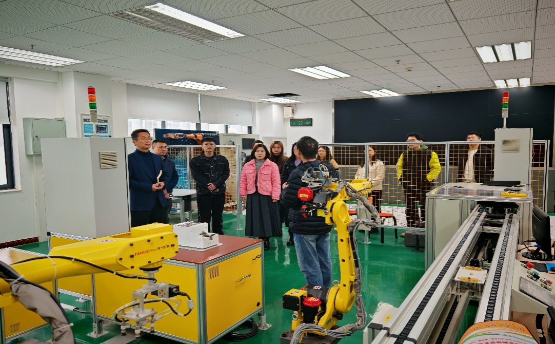 在杨奇凡副书记的带领之下,我院教师队伍走访参观了先进制造学院的育人实践基地——先进制造实验中心,在中心老师的详细介绍中了解了该实验中心前沿的制造技术和设备,包括高精度数控机床、3D打印系统、智能机器人生产线以及自动化测试平台等。这些设备不仅体现了现代工业技术的最新成果,还深度融合了信息技术与制造技术,为学生提供了一个将理论知识转化为实际操作技能的宝贵平台。