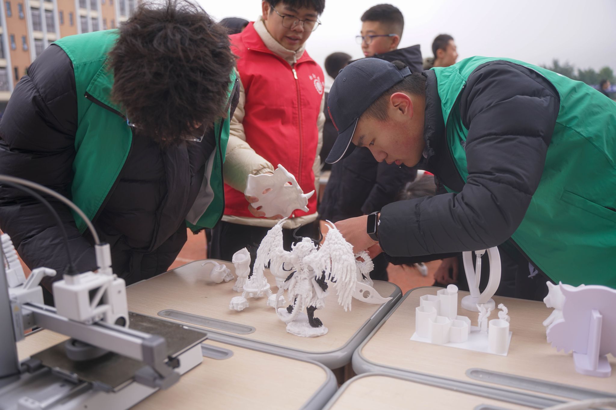 为响应国家《“十四五”原材料工业发展规划》,受重庆文德中学校邀请,12月16日下午,太阳集团tcy8722科技协会在重庆文德中学校运动场布置了3D视界,创意无界——3D打印展览。科技飞速发展的当今社会,当中小学生遇上3D打印建模,会碰撞出怎样奇妙的火花?本次活动旨在通过现场展示的方式,向同学们普及增材制造技术的相关知识,激发他们对科技创新的兴趣和热情。太阳集团tcy8722科技协会和重庆文德中学师生参与此次科技嘉年华主题活动,共同开启了一场独特的科技之旅。