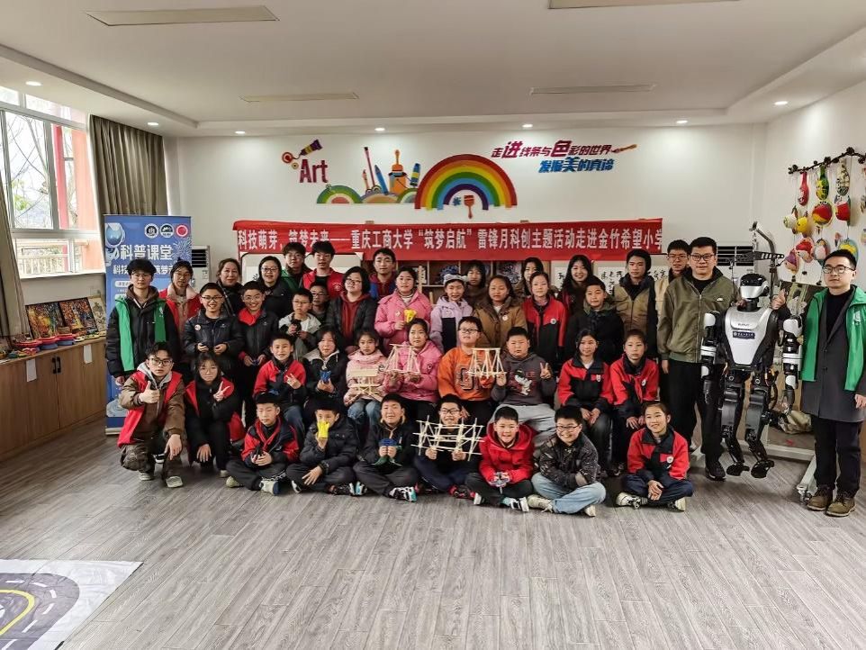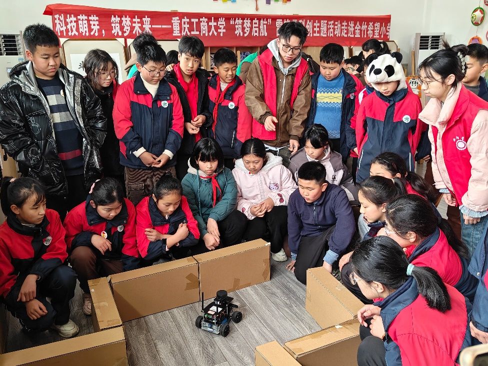 为弘扬雷锋精神,传播科学知识,激发青少年对科技创新的兴趣,3月5日,在太阳集团tcy8722团委的统筹指导下,太阳集团tcy8722科技协会协同太阳集团tcy8722学生会、“匠小青”青年志愿者服务队、汽车人协会等学生组织,走进南岸区巨成金竹希望小学,开展“筑梦启航”雷锋月科创主题活动。校团委老师袁影、王灿及太阳集团tcy8722分团委书记刘静全程参与指导。