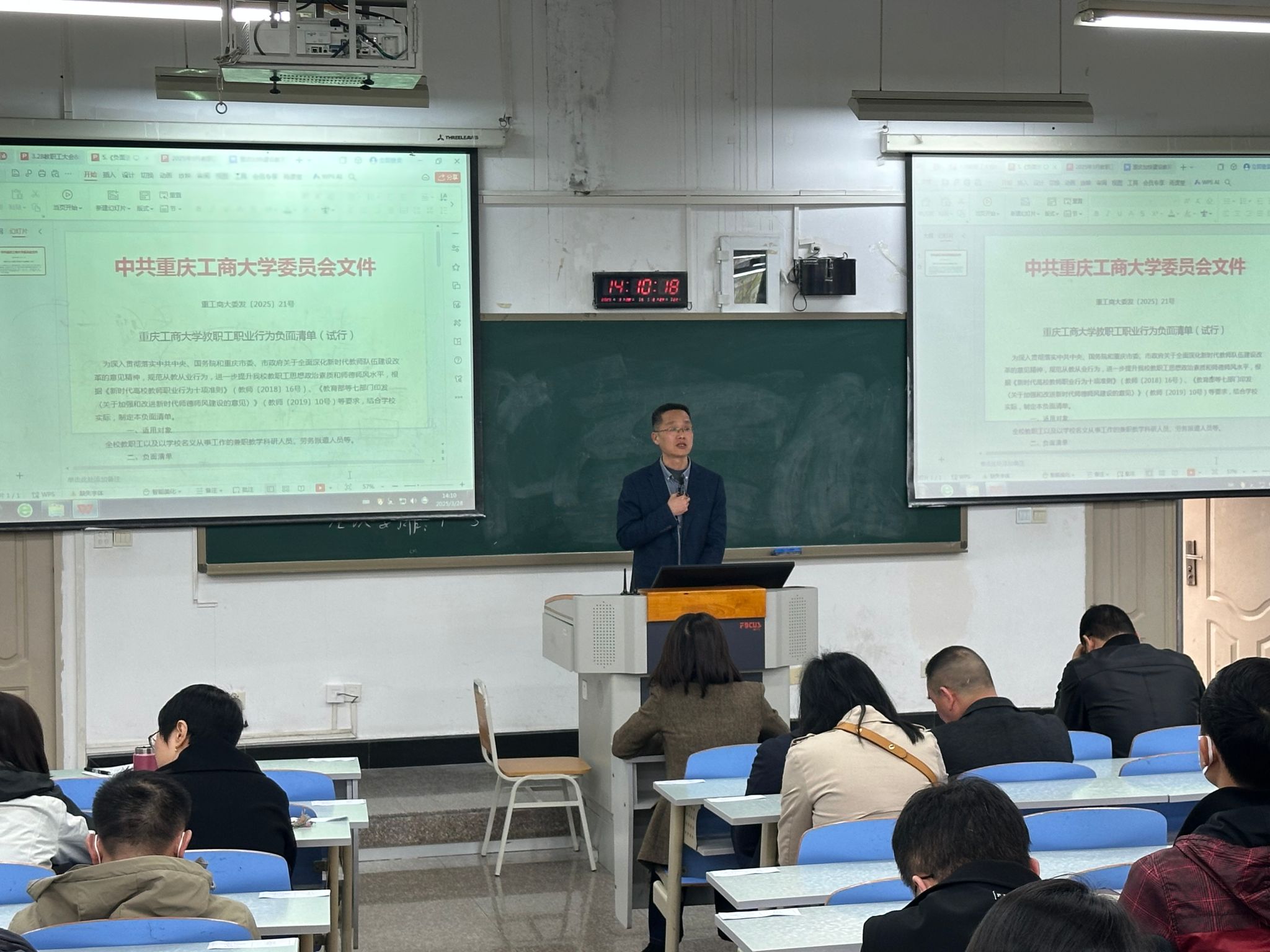3月28日,太阳集团tcy8722在90308教室召开了师德师风建设大会。会议由党委书记杨娟主持,全院教职工参加会议。