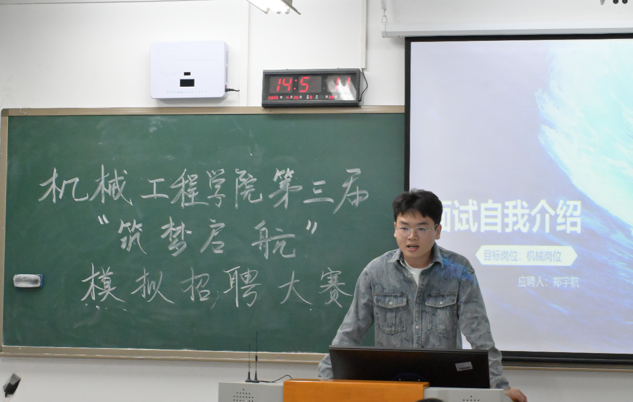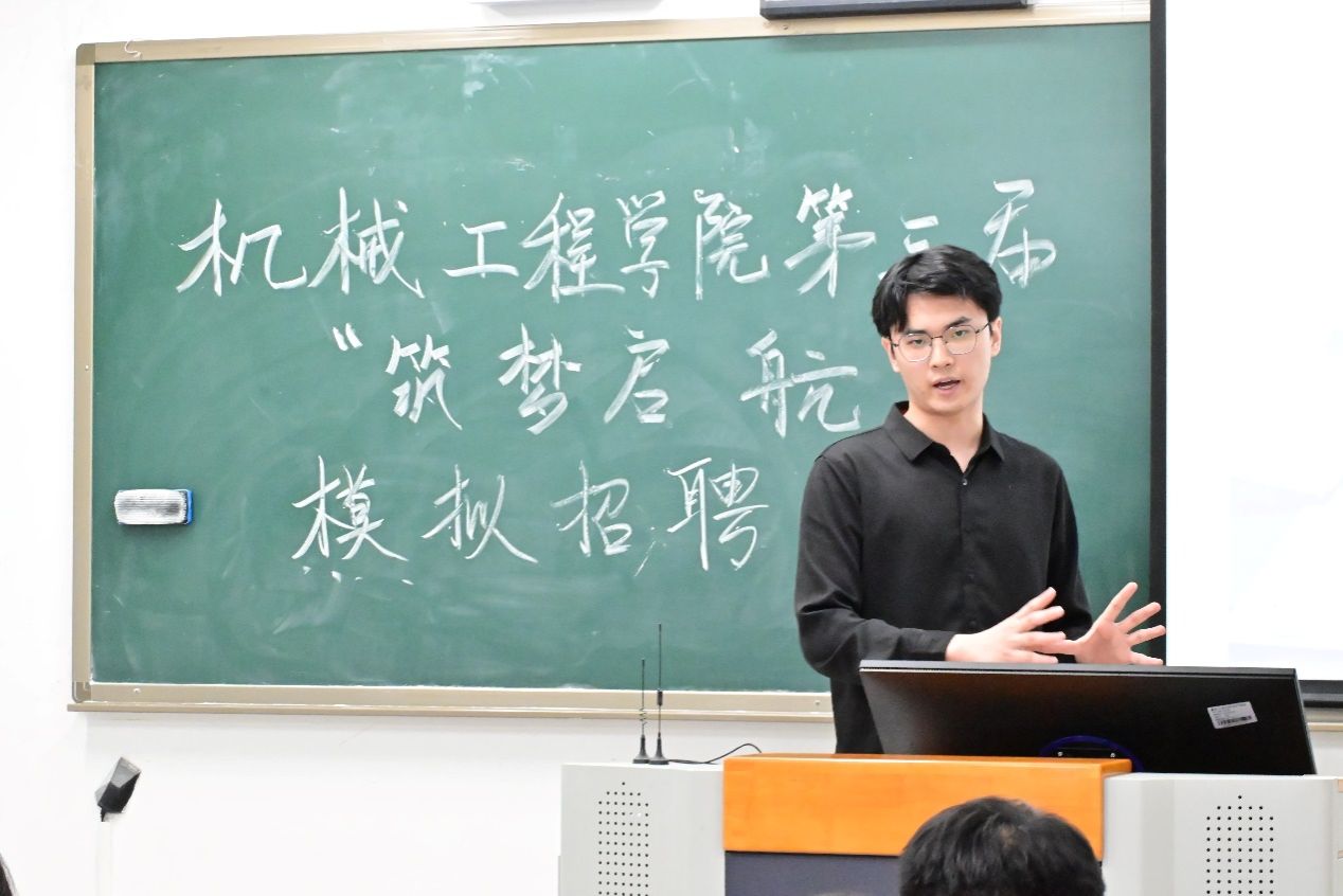 大赛分为“简历展示”“结构化面试”两大环节,全方位模拟真实招聘场景。参赛选手结合机械工程专业特色,围绕智能制造、新能源汽车等热门领域,展示个人专业技能与实践成果。在结构化面试中,评委蔡朕、李怡然老师针对职业规划、团队协作、行业趋势等提出犀利提问,并给予个性化建议。李怡然老师强调:“简历需突出与岗位匹配的核心优势,面试应答要体现解决问题的逻辑思维。”蔡朕老师则提醒学生关注行业动态,“机械工程师不仅要夯实技术基础,还需具备跨学科视野与创新意识”。