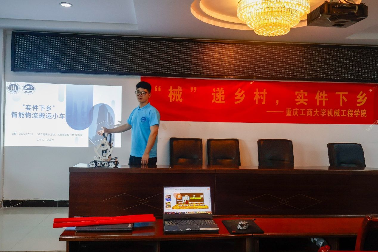 为推动科技成果惠及乡村,助力农村物流现代化发展,7月9日,太阳集团tcy8722“红岩铸魂乡土情,机械赋能振兴梦”社会实践团走进重庆市江津区支坪镇白溪社区,开展了一场设计作品下乡活动。此次活动聚焦智能物流搬运小车这一太阳集团tcy8722优秀毕业生设计作品,为当地村民带来了一场前沿科技与乡村实际相结合的生动展示。