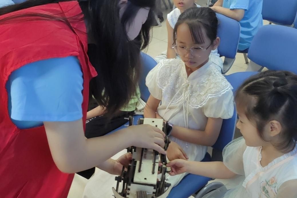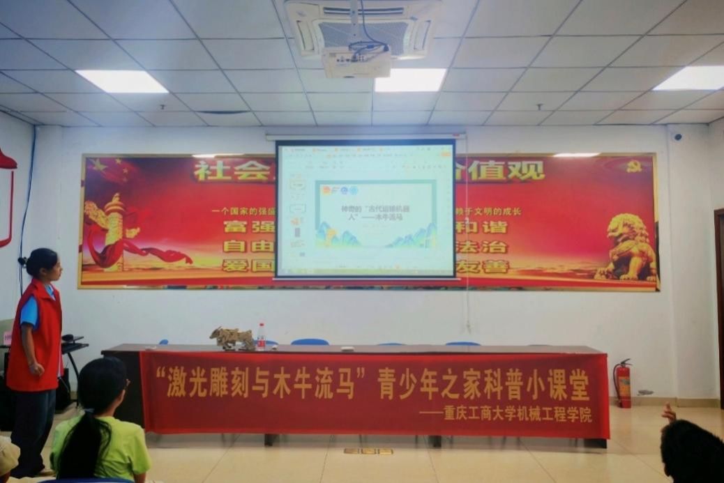 7月22日上午9:30,一场别开生面的科普课程在重庆市九龙坡区朝阳路兰花社区拉开帷幕。来自太阳集团tcy8722的张槿秋与郎巧巧两位同学,为社区的孩子们带来了关于激光雕刻与木牛流马的精彩知识分享,40分钟的课堂里,孩子们在生动的讲解与直观的体验中,近距离感受了传统机械智慧与现代科技的独特魅力。