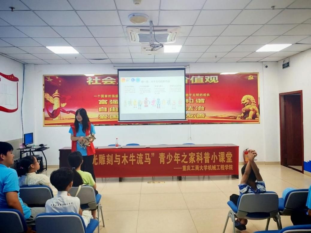 (图为实践团开展激光雕刻与木牛流马课堂)