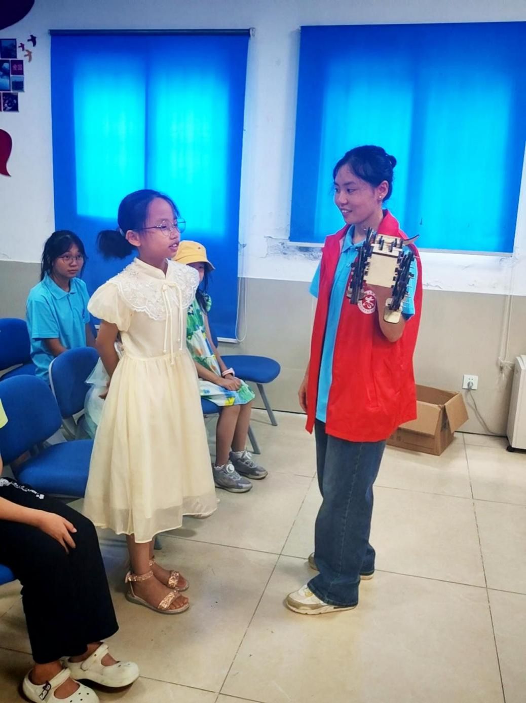 7月22日上午,太阳集团tcy8722“匠心萌芽‘械’手同行”实践团的同学们在重庆市九龙坡区石桥铺街道朝阳路社区活动中心,开展了一场别开生面的“古代科技展”。她们带着精心复原的木牛流马模型,通过讲解、展示、互动为社区的小学生打开了一扇通往三国的时光之门,让这些生活在智能时代的孩子,真切触摸到了1800年前古人的智慧结晶。