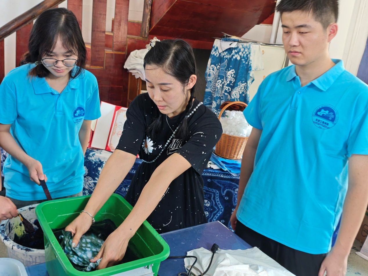 实践团成员亲身体验了扎染体恤、衣服的制作过程,从布料扎结到染料调配,每一个环节都凝聚着传统技艺的精湛工艺。团队成员通过实际操作,深刻感受到传统手工艺的复杂性与精密性。