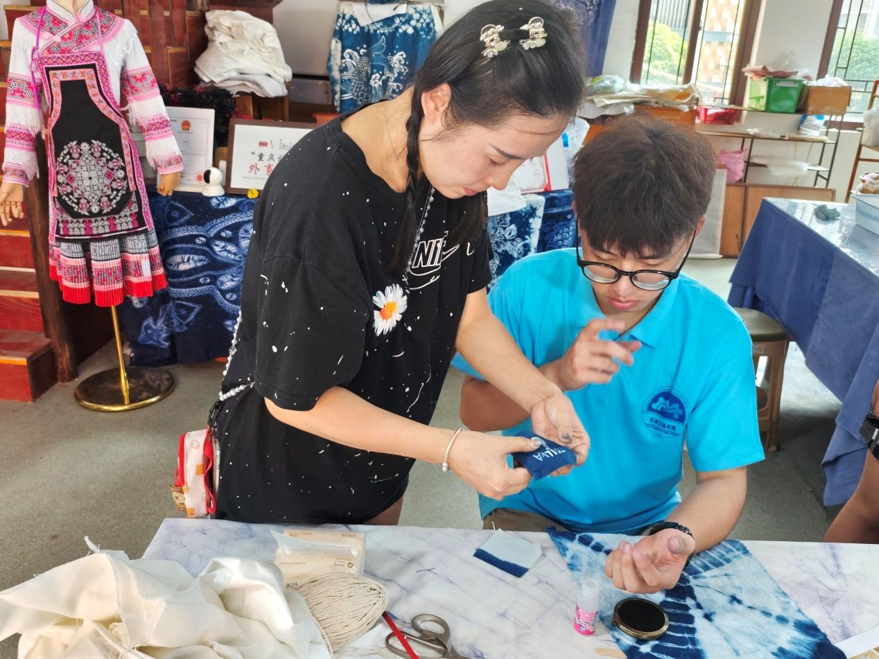 在非遗传承人冉媛女士的专业指导下,实践团成员系统学习了蜡染、扎染、苗绣、剪纸等传统手工艺的制作技法。团队成员详细观摩了蜡染发卡、簪子、手链、钥匙扣、披肩等工艺品的制作流程,深入了解蜡染技艺的完整工艺体系。