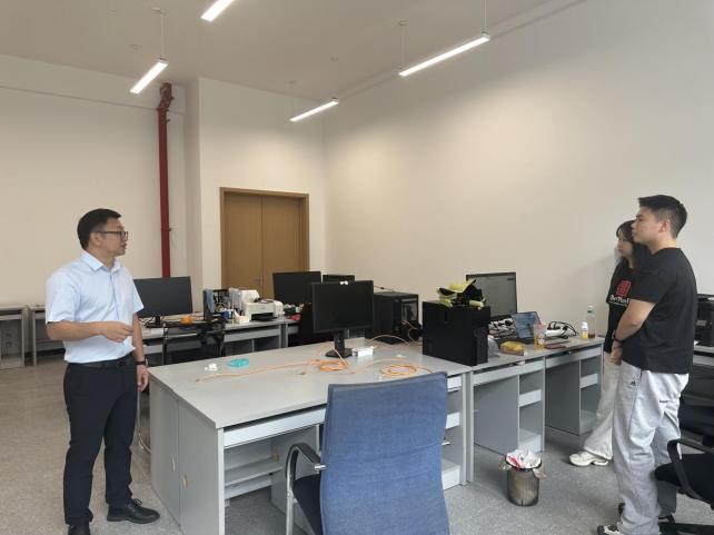 在研究生工作室,副院长谢俊要求研究生双节期间注重用电安全与环境卫生,确保工作室安全有序。