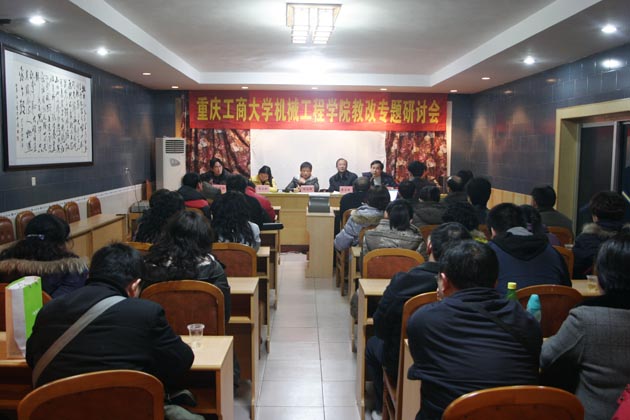 首先,学院院长张贤明作了讲话。他首先回顾了学院近年来在教改方面所采取的举措,明确了学院需要加大教学改革力度、推动学科建设上档提速、加大人才培养含金量的理念;接着着重就学院的包装工程专业,结合株洲工学院、西安理工大学等国内机械、包装专业知名院校分析了目前国内其他同类高校相关专业的发展形势,通过列举学院现有一大批包装企业支撑、正在组建一个年轻化的教学科研团队、有很多日元贷款的设备且目前市场上对该专业毕业生的需求量很大等优势,勉励学院教职员工培养创新精神,探索特色的发展道路,将教学与科研、产学研结合起来,力争把包装工程专业办成在全国都有特色的知名专业。