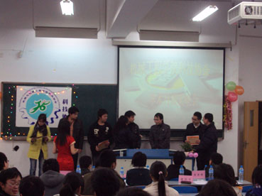 活动在一段精彩的视频中拉开了序幕。生动的画面配着轻松的音乐,让大家再一次回顾了四大赛事的点点滴滴以及精彩瞬间,同学们在视频资料中找到了自己的身影,轻松愉快的氛围为颁奖晚会的现场增色不少。视频过后,张贤明院长为晚会做了致辞,他对获奖的同学们表示了祝贺,并通过自己的成长经历激励大家积极投身到科技创新和发展的事业中来,并向同学们介绍了学院的近期科技成果情况。张院长的讲话生动形象,风趣幽默,赢得了同学们的阵阵掌声。随后便进入到此次活动的高潮――颁奖阶段。伴随着阵阵热烈的掌声以及欢呼,四大赛事――“机械制图大赛”,“慧鱼工程技术创新设计大赛”,“我为工程难题献创意”,“机械创新大赛”的各个奖项纷纷被揭晓。最后,学院党总支书记喻永红对此次活动作了总结性发言,对同学的积极参加予以表扬,并鼓励更多的同学加入到科技学术活动中来!