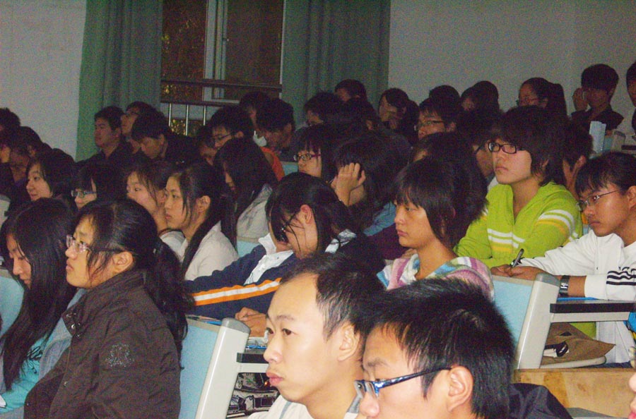 2009年10月16日上午,机械学院在兰花湖校区为09级新举办了首次专业知识学术讲座,由学院的伍太斌教授主讲。