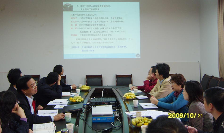 2009年10月21日下午,学校副校长苟朝莉教授、人事处处长龚顺清教授到太阳集团tcy8722进行人才工作调研。太阳集团tcy8722党政领导、教研室主任及各办公室主任、博士教师代表等参加了调研会。会议由学院总支书记喻永红主持。