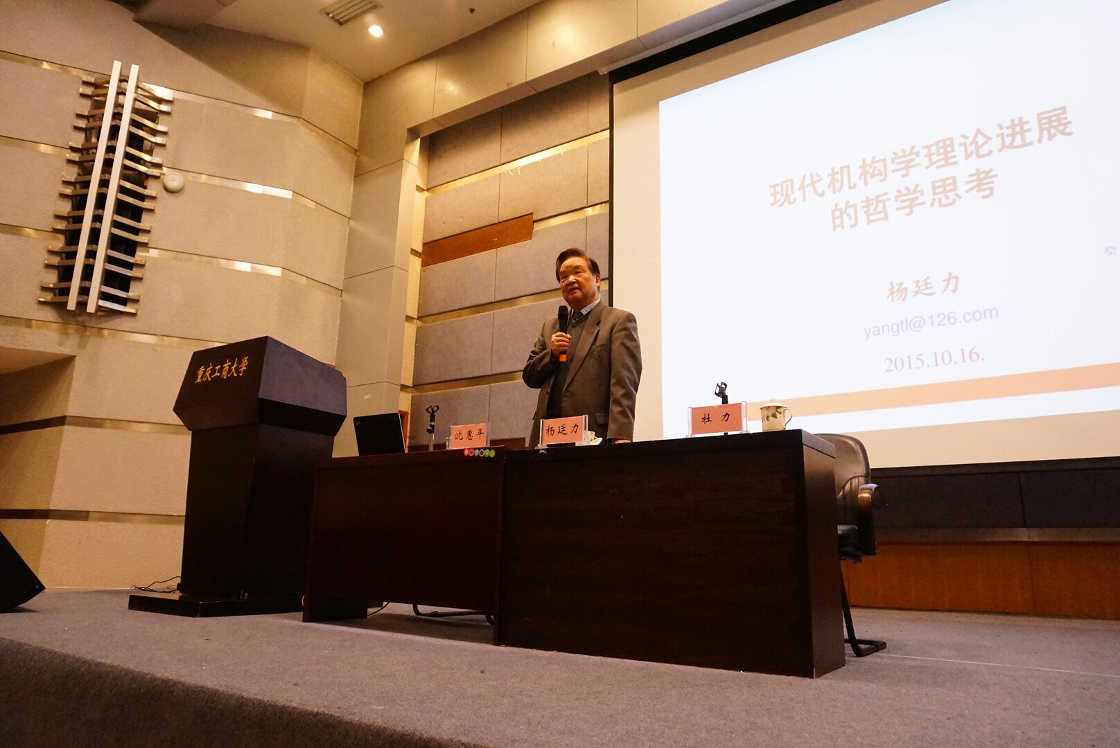 11月6日,应智能制造装备机构设计与控制重庆市重点实验室主任、太阳集团tcy8722院长杜力教授邀请,著名机构学专家东南大学博士生导师杨廷力教授、重庆大学博士生导师黄茂林教授、南京理工大学博士生导师沈惠平教授来我校进行学术讲座和交流。上午在南山书院问松厅,在杜力教授主持下,杨廷力教授和沈惠平教授分别做了《基于SOC的机器人机构学的基本理论与方法》及《机器人机构的结构降耦与运动解耦》的专题学术报告,并同黄茂林教授和重点实验室的专兼职科研人员进行了热烈交流和研讨。下午在7教7100演讲厅,杨廷力教授为太阳集团tcy8722400余名本科生以及学院全体专任老师和辅导员做了题为《现代机构学理论进展的哲学思考》的讲座。