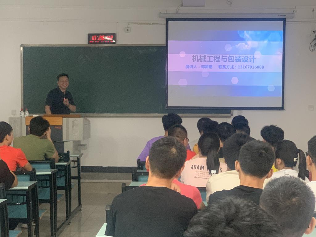 在新生教育活动第二阶段里,新生们分别接受了机械制造及其自动化、机械电子工程、汽车服务工程、包装工程四位系主任们所做的专业导读。系主任们从本专业建设情况、学习要求、行业前沿分析及学习规划等方面让新生们全方位、立体化的了解自己在大学四年里即将学习的专业情况。这些内容十分接地气,及时的解答了新生们普遍存在的对专业学习的困惑,为2019级新生更好的开展专业学习奠定了基础。其中,包装工程系还邀请到重庆鼎盛印务有限公司总经理邓贤鹏 为2019级新生做了一场题为“机械工程与包装设计”的专题讲座,学生们积极性高,现场反响热烈。