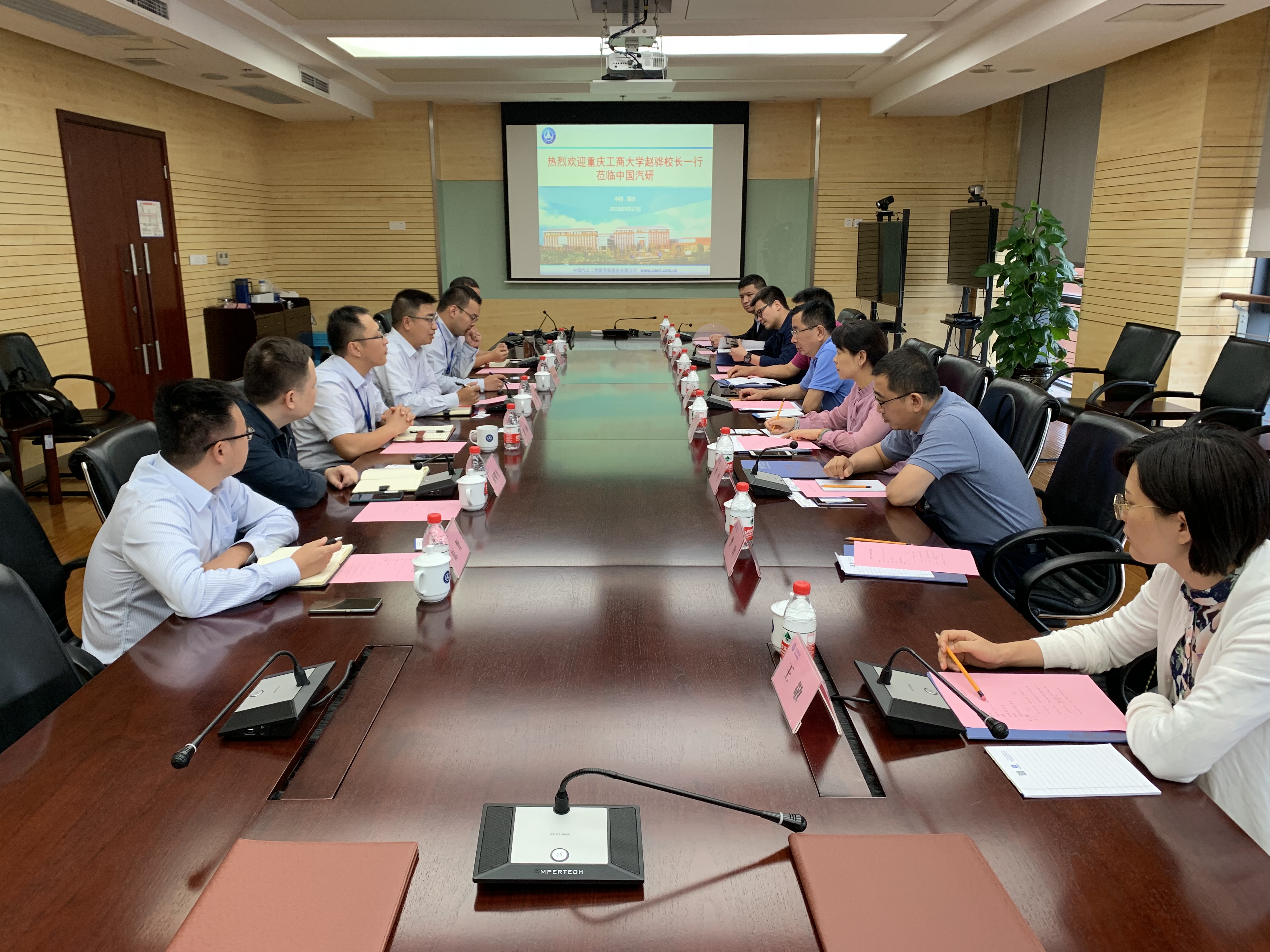 9月17日下午,太阳集团tcy8722党委常委、副校长赵骅带领太阳集团tcy8722院长杜力、副院长杨祖彬、副院长李平及相关专任教师代表一行,到中国汽车工程研究院股份有限公司举行了双方战略合作框架议协议的签署仪式,并就今后的合作内容及方式进行了详细的商讨。