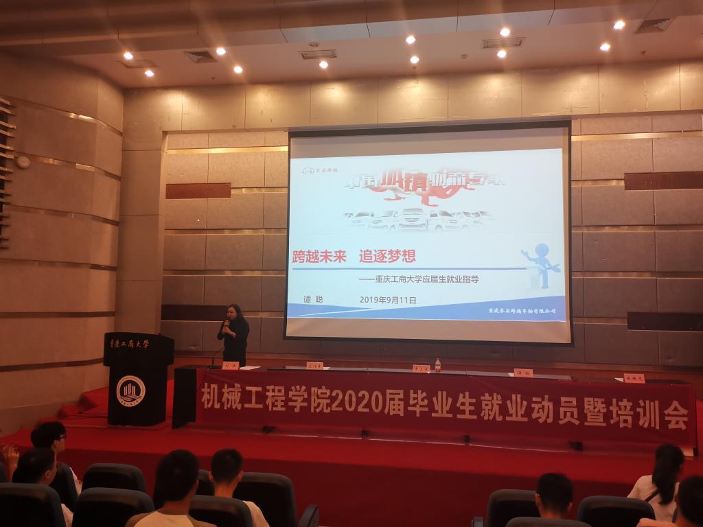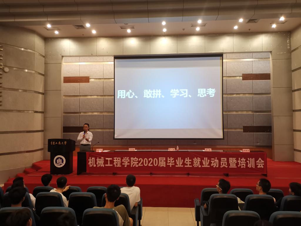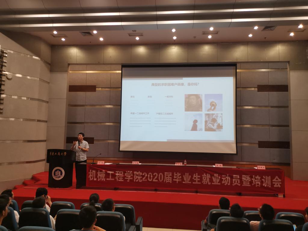 为助力2020届毕业生顺利开启职业生涯,早日实现就业、创业,9月11日晚上6点半,太阳集团tcy8722在7100学术报告厅召开了2020届毕业生就业动员暨培训会。太阳集团处处长申卫东,华晨鑫源重庆汽车有限公司人力资源部部长王兴东,重庆长安跨越集团有限公司招聘配置室主任谭聪,重庆聪筑信息科技有限公司、重庆悟修企业管理咨询有限公司创始人、总经理朱峻龙,毕业班辅导员和学院2020届毕业生参加了本次培训大会。会议由学院党总支书记刘洋主持。