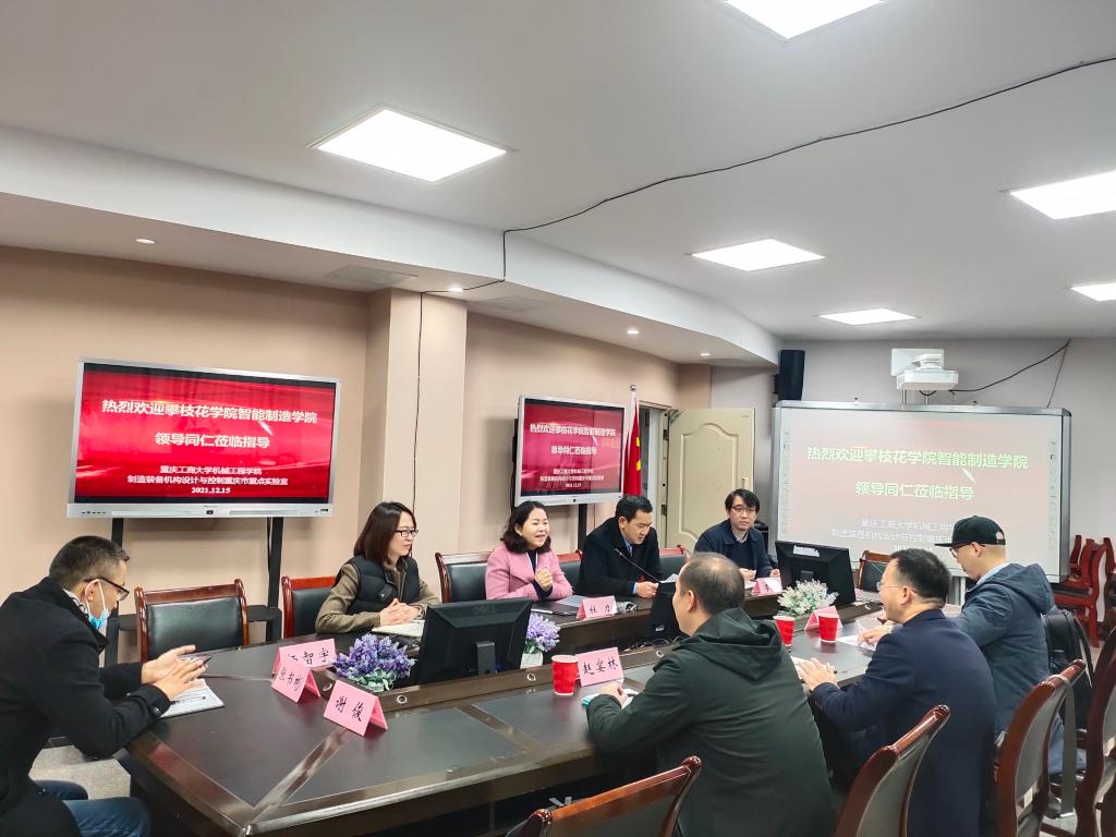 2021.12.15日,攀枝花学院智能制造学院黄小兵院长、魏弦副院长、赵晏林科长到访太阳集团tcy8722,学院班子在慧智楼708会议室与黄院长一行就学科建设开展座谈,系部主任等参加了会议。