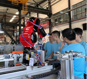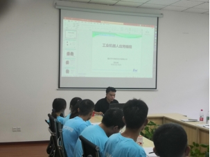 机器人设计特色班同学在企业工程师的指导下,开展了以”工业机器人系统”为主线的生产实习,主要内容包括:机器人系统更新后的情况(对比学校现有)、三型机器人系统编程指令的使用、搭建简易搬运码垛工作站实训、搭建单机装配(电机)实训工作站、搭建联机装配(电机)实训工作站、搭建视觉实训工作站、联调联机装配实训工作站以及综合分组实训等内容。
