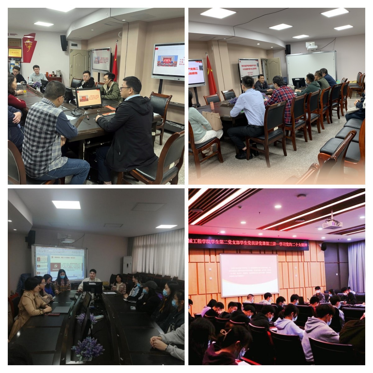 二是抓实全方位宣传。党的二十大召开以来,学院党委、各党支部、各系部在深入学习、深刻领悟、深化认知上下功夫,在强化宣传、强大氛围、强建团队上见实效。通过组织全院师生观看二十大开幕式,举办二十大精神知识竞赛、学生党员讲党课、二十大金句摘抄、主题班会、主题团日活动等方式,以小切口讲述大问题,用小事例解读大文章,引导师生真学、真懂、真用。同时,为打破学习壁垒,学院3个教工党支部及2个学生党支部形成跨支部、跨班级的师生联动,同分享、同记录,同频共振,全面强化党的二十大学习宣传浓厚氛围。