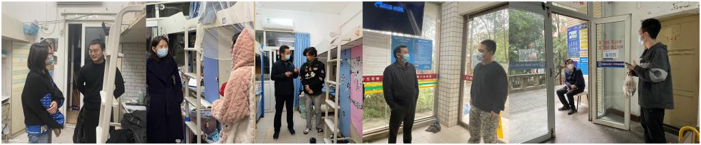 他们为防止因线上上课、静默管理等原因引起学生心理不适,分别到学生宿舍进行走访,了解学生在校园封闭管理期间的需要、诉求,加强学生的心理疏导,缓解焦虑等不良情绪,做好人文关怀。副书记陈春洁、副院长李平、辅导员郭伟、梁振伟老师多次开车送生病的同学外出就医。