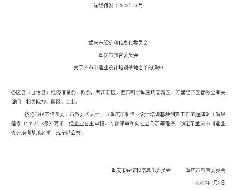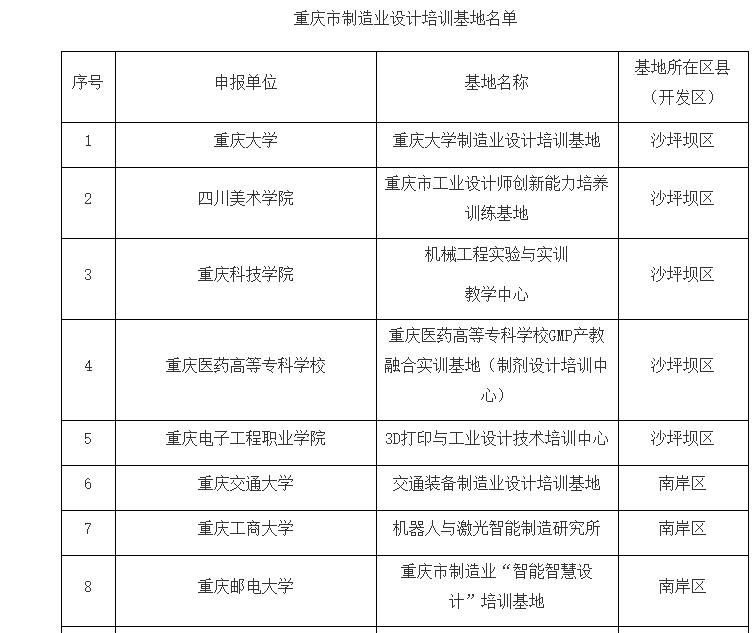 从重庆市经济和信息化委员会公布了重庆市制造业设计培训基地入选名单,我校获批重庆市制造业设计培训基地。