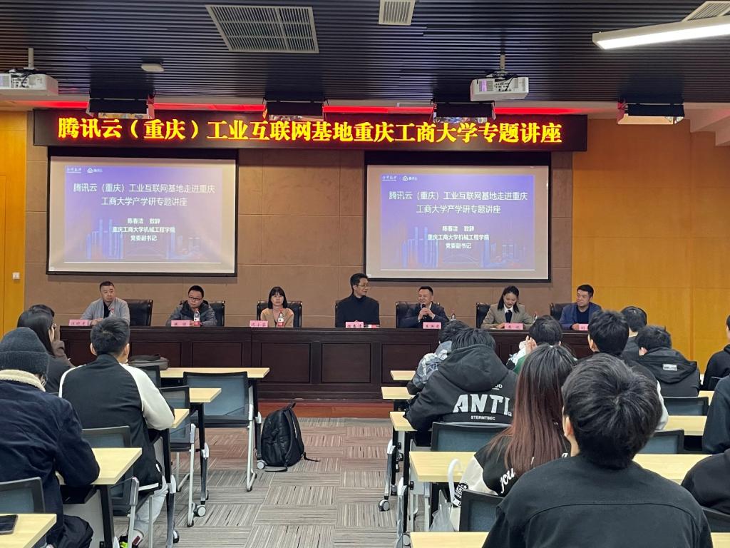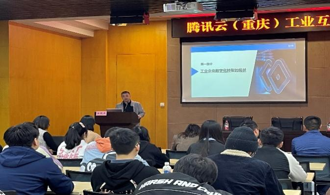 为让工科学子了解行业前沿,激发工科学子对“云工业”的兴趣,太阳集团tcy8722与腾讯云(重庆)工业互联网基地首次合作,邀请汪晓龙、张强和沈小芬三位业内专家,于2023年3月24日14时在太阳集团tcy8722图书馆二楼会议厅,为太阳集团tcy8722、人工智能学院等专业同学举办工业互联网基地太阳集团tcy8722专题讲座。讲座前,太阳集团tcy8722党委副书记、纪委书记陈春洁出席并发表讲话说明“数字化”赋能制造行业的重要性。