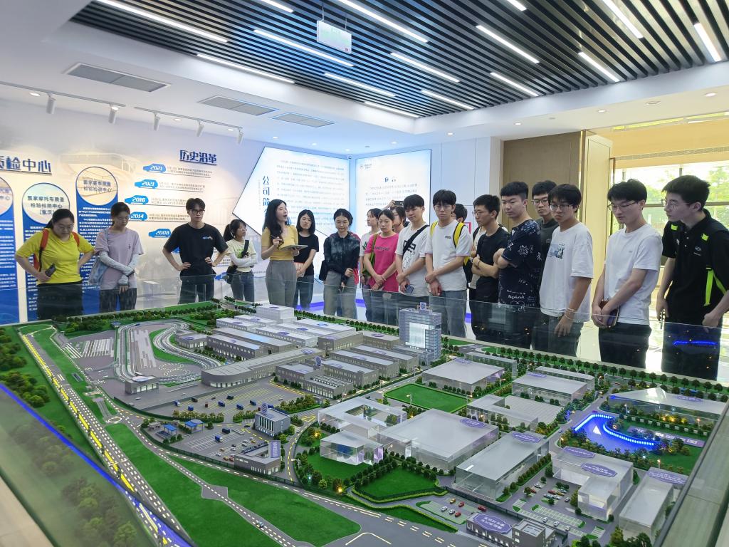 接下来,招商车研安排了富的参观内容,同学们先后走访了包括碰撞试验研究部、部件测试研究部、碰撞实验室、智能汽车与智慧交通技术创新中心、新能源试验研究中心等多个关键技术部门,并指定了相关部门的技术骨干进行系统的讲解。这一过程进一步加深了同学们对汽车整车、零部件测试、试验、检测、分析以及认证等环节所涉及到的方法、原理的系统化认知。