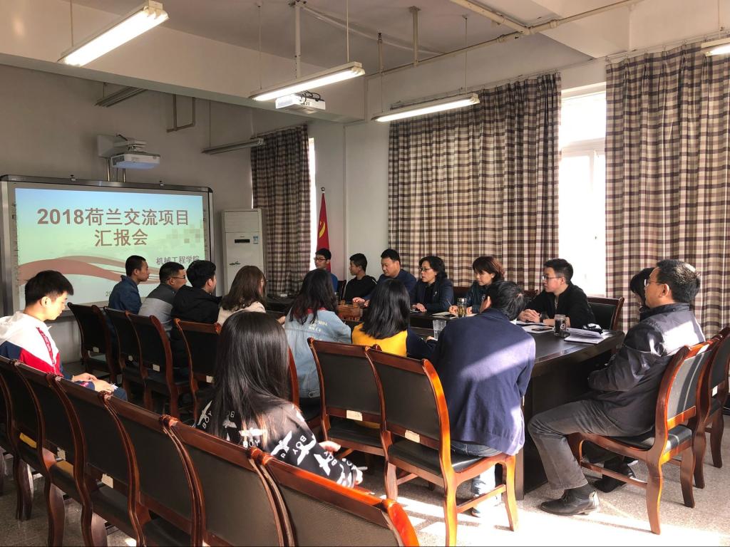 其次,本次荷兰交流项目的带队老师李永亮就本次项目的概况进行了汇报。本次项目太阳集团tcy8722共派专业课教师1名、包含三个年级四个专业的学生10名于2018年1月27号至2月10号赴荷兰上艾瑟尔省兹沃勒市的文德斯汉姆应用技术大学,参加为期两周的专业交流项目,取得了圆满成功。本次项目是根据2017年2月太阳集团tcy8722与文德斯汉姆大学签订的长期交流合作协议,双方师生围绕“第八届全国大学生机械创新设计大赛”的选题展开的专业项目交流,通过前期双方的协作,今年五月份,荷兰文德斯汉姆大学将派出6位机械专业学生与我院10名学生共同组成参赛团队,参加第八届全国大学生机械创新设计大赛重庆赛区的比赛。
